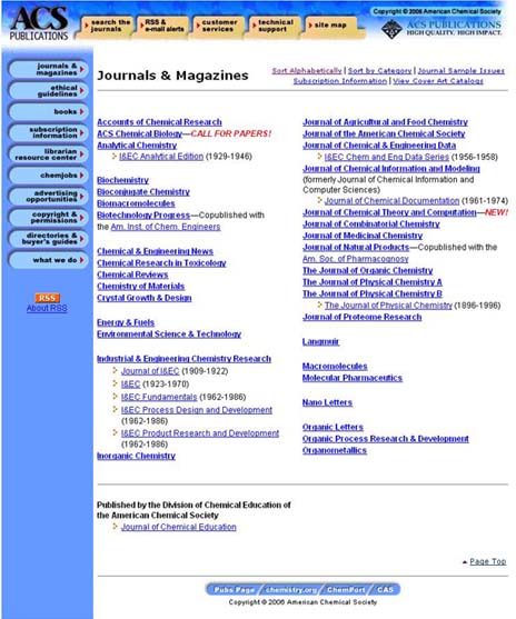 2) ASC Legacy Archives – с 1879 по 1995 гг. Из 35 текущих научных изданий 24 имеют архивные выпуски с момента основания журнала. 10 новых журналов начали издаваться не позднее 1997г.