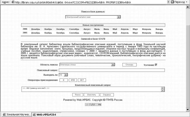 Выбрать «Электронные каталог книг» в области выбора базы данных;
