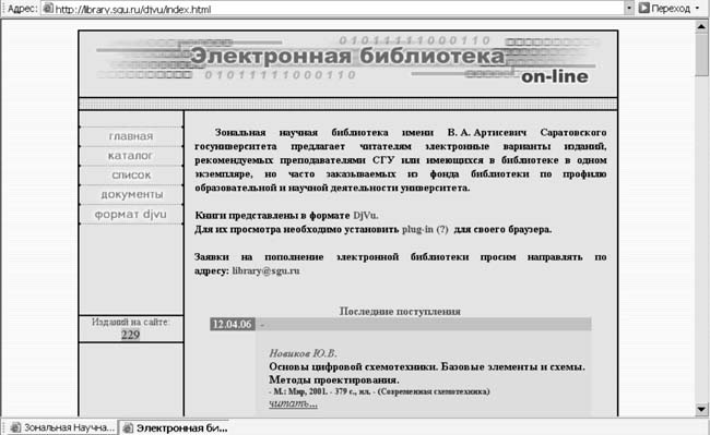 Еще одно замечание касается используемого формата записи. Чтобы электронные копии изданий были компактнее и читались быстрее, в электронной библиотеке используется формат DjVu. Все необходимые сведения об этом формате представлены в разделе «Формат DjVu».