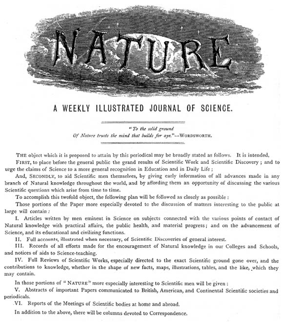 1869 год, Лондон. Королева Виктория правит 32 года – ровно половину своего царствования: расцвет Викторианской эпохи. В Лондоне привыкают к метрополитену, готовятся к открытию Суэцкого канала (и к премьере «Аиды» Верди!) и обсуждают проекты тоннеля под Ла-Маншем…. Карл Маркс недавно опубликовал 1-й том «Капитала» и работает над следующими томами, которые так и не успеет закончить. Джеймс Клерк Максвелл публикует трактат «Динамическая теория электромагнитного поля», содержащий Уравнения Максвелла. «На фоне этого важного научного открытия гражданская война в Америке в том же десятилетии будет выглядеть провинциальным происшествием» (Р. Фейнман). Очередной большой труд Дарвина по теории искусственного отбора «Изменение домашних животных и культурных растений» вызывает бурные споры в научных кругах и светских салонах. Александр Николаевич Герцен покидает Лондон и «едет умирать» в Париж, который вскоре переживет поражение в войне с Пруссией и Парижскую Коммуну. А в далекой (от Лондона!) России его соотечественник Дмитрий Иванович Менделеев открывает Периодический закон химических элементов. Россия «только что» продала Аляску Северо-Американским Соединенным Штатам, которые десятилетием ранее на свою голову «разбудили спящего зверя» – Японию, где как раз сейчас в разгаре Революция Мэйдзи Исин… 4 ноября 1869 года выходит 1-й номер «Еженедельного Иллюстрированного Журнала о Науке» «Nature»