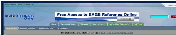 3. Журналы издательства Sage Publication (коллекция STM, http://online.sagepub.com) – свыше 500 журналов по гуманитарным и общественным наукам, естественным наукам, медицине и технологиям. Архив номеров – с 1999 года.