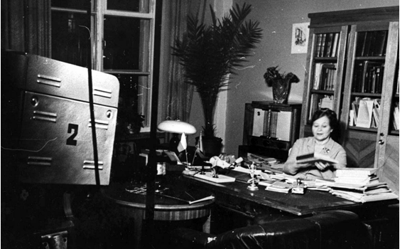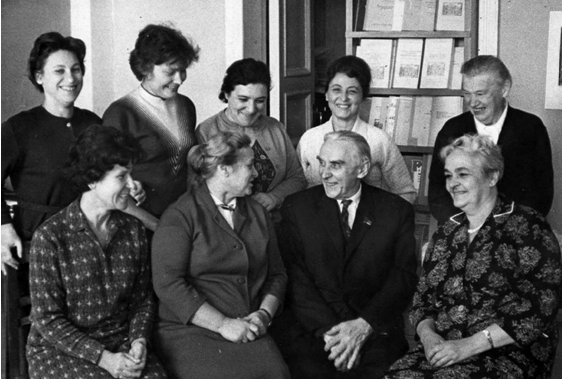 К. А. Федин и сотрудники НБ СГУ в кабинете директора НБ СГУ (1966 г.)