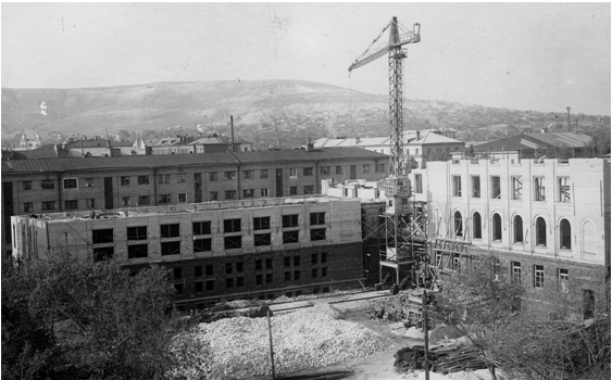 1954 В первом квартале 1954 года всё новое здание НБ СГУ было подведено под крышу. Затем, в следующие три месяца, возведены стропила крыши и начато покрытие её железом. С сентября месяца НБ СГУ стала получать газеты европейских стран народной демократии в количестве 12 названий.
