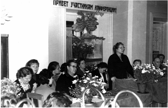 Участников научно-практической конференции-семинара библиотекарей вузов приветствует директор НБ СГУ В. А. Артисевич (1965 г.)