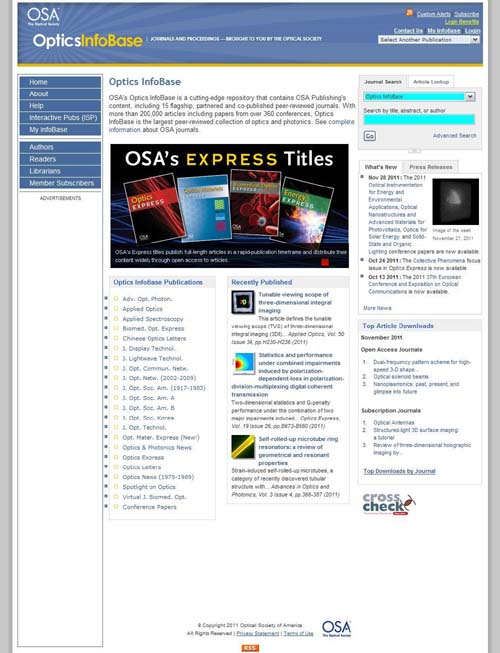 Optics InfoBase – журналы Американского Оптического Общества (OSA). Очень авторитетные в сообществе оптиков. Архив – с 1917 года.
