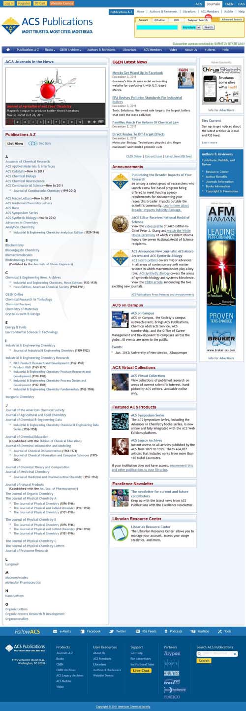 ACS Publications – журналы Американского Химического Общества. Пользуются огромной популярностью у читателей, и не только химиков! В этом году из-за досадной оплошности российским пользователям доступ был закрыт всё лето, но сейчас – всё в порядке. Архив – с 1879 года.