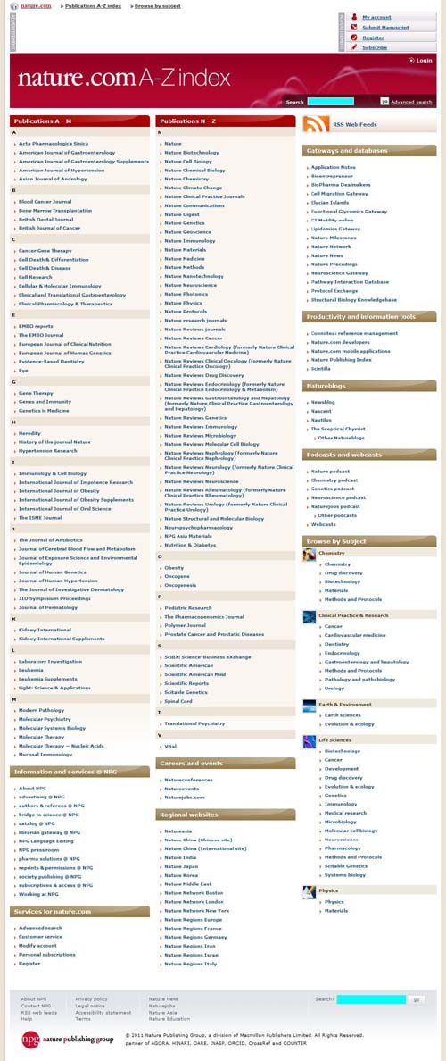 Nature Publishing Group – журналы по естественным и точным наукам. Особенно следует отметить «Nature», один из старейших научных и научно-популярных журналов, издающийся в Англии с 1869 года.