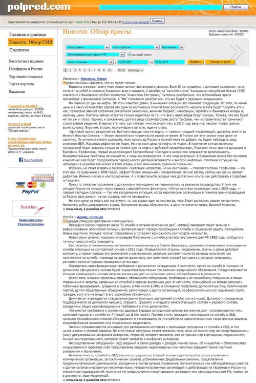 ПОЛПРЕД – Русскоязычная база данных аналитических материалов по странам и отраслям за 1998–2009 годы. Внешнеэкономические связи, экономика, право.