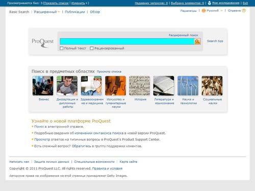 Весной этого года университет получил тестовый доступ на два месяца ко всей базе данных ProQuest – крупнейшему агрегатору научных ресурсов. До лета 2012 года действует платная подписка, но только на три коллекции (на всё денег не хватило!).