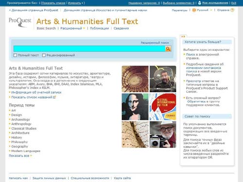 ProQuestArts&Humanities – База данных по гуманитарным, общественным дисциплинам и искусству.