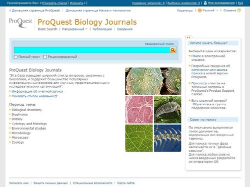 ProQuest Biology Journals – Журналы по биологии и смежным наукам. Хотя и пересекается с коллекцией EBSCO, но содержит ряд уникальных материалов.