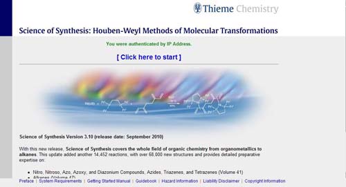 Science of Synthesis – Информационно-справочный ресурс по органической и металлоорганической химии. Подписка до 1 января 2012 г. Обширная база данных с ссылками на статьи. Возможен поиск по структурным формулам и уравнениям реакций!