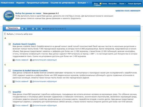 EBSCO – крупнейший в мире агрегатор научной периодики. Сочетает в себе реферативную (охват – более 10000 журналов) и полнотекстовую (охват – более 4000 журналов) базы данных. Ресурс не нуждается в подробном представлении, так как хорошо знаком нашим читателям уже более десяти лет. Но случались досадные перерывы в доступе – и здесь всё дело в деньгах... Компания регулярно предоставляет подписчикам бесплатный временный доступ к новым коллекциям. Так, недавно была подключена база данных CASC (Computers & Applied Sciences Complete), которая охватывает материалы по компьютерным и прикладным наукам, а также по материаловедению для исследователей и разработчиков. Она содержит рефераты из более чем 2000 академических журналов, профессиональных публикаций и других справочных источников из различных коллекций. Имеются также полные тексты более чем 950 периодических изданий. INSPEC – реферативные базы по научной и технической литературе. Подписка до 1 января 2012 г.
