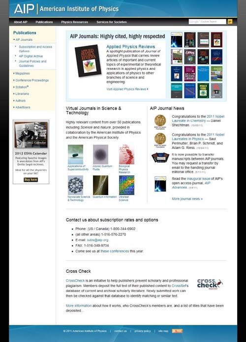 Журналы Американского Института Физики (AIP Journals) – чуть больше десятка журналов, издаваемых Американским Институтом Физики, а также несколько виртуальных журналов. Архив – с 20-х годов прошлого века.