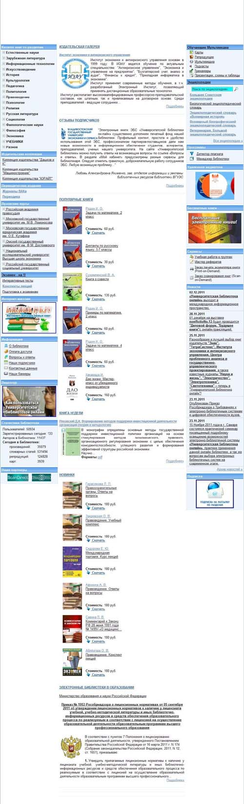 «Университетская библиотека online» содержит огромное количество научной и учебной литературы по образовательным программам высшего и среднего специального образования. Также довольно полно представлены классические тексты по литературе, истории, философии.