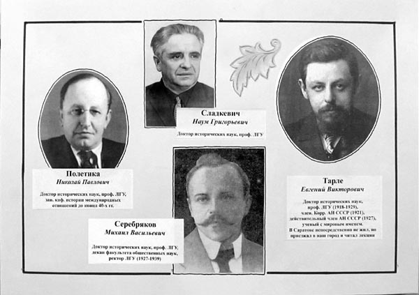 Многие годы ЛГУ предоставлял возможность саратовским студентам-историкам проводить в Ленинграде музейную практику. Ряд профессоров ЛГУ систематически приезжают в Саратов для чтения лекций в СГУ и выступления в качестве оппонентов на защите диссертаций. Так, профессора Н. И. Девятайкина, Т. С. Николаева, Я. А. Эльфонд защитили в ЛГУ и кандидатские, и докторские диссертации, а профессора А. А. Демченко, М. А. Кормилицына, П. С. Кузнецов, Н. С. Морозов, В. А. Шабалин – докторские.