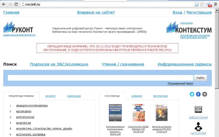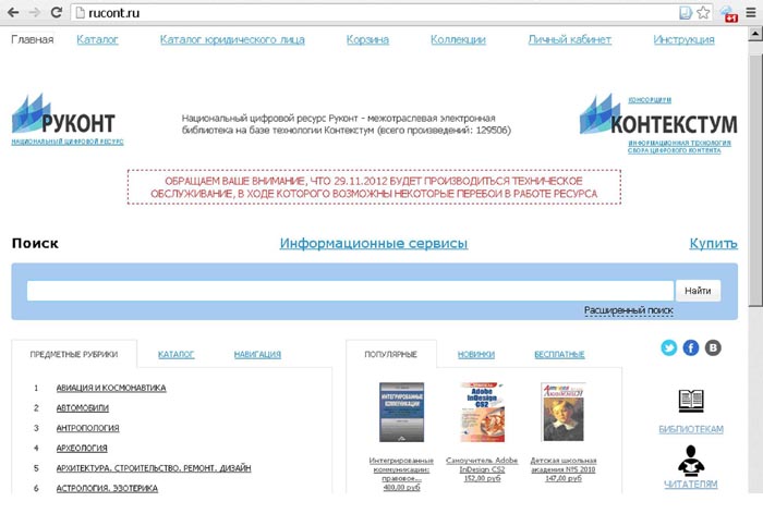 В «Каталоге» представлен полный перечень электронных книг ЭБС «РУКОНТ». Каталог разбит на тематические разделы и подразделы.