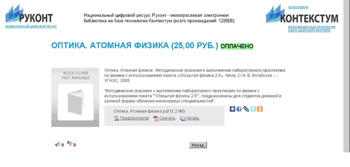 Это означает, что без дополнительной оплаты можно скачать издание себе на компьютер для дальнейшей работы или поработать с изданием непосредственно на сайте. Скачанные издания не должны передаваться третьим лицам. Они предназначены только для индивидуального использования. Разработчики утверждают, что формат файла позволяет в дальнейшем определить, кем и когда файл был скачан из ЭБС «РУКОНТ».