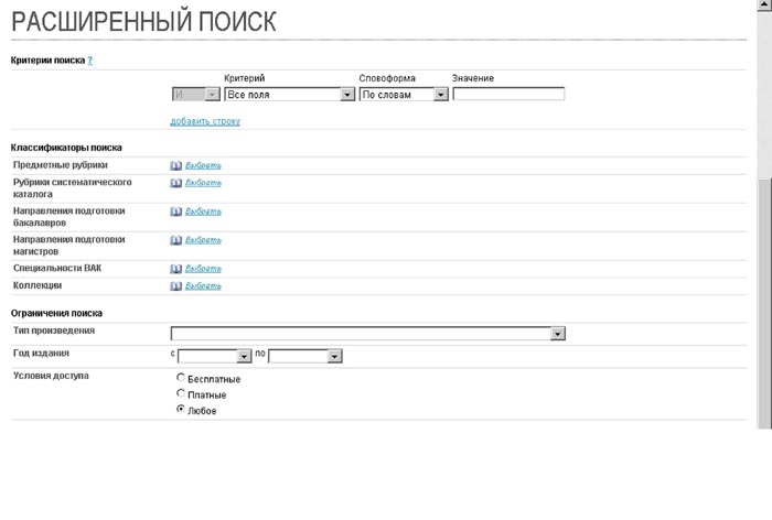 Как и в других ЭБС, в «РУКОНТе» предусмотрена возможность поиска по автору, заглавию, году издания. Есть поиск по предметным рубрикам и рубрикам систематического каталога. Среди особенностей ЭБС можно отметить поиск по направлениям подготовки бакалавров и магистров и по специальностям ВАК, что очень удобно при формировании списков учебной литературы. Эти дополнительные возможности представлены в блоке «Расширенный поиск».