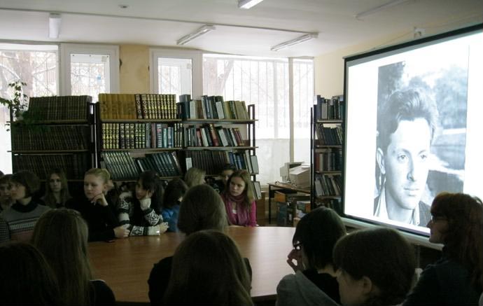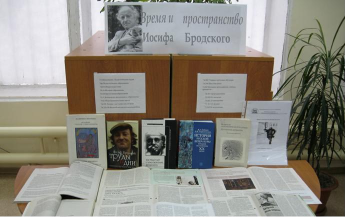 Вниманию студентов была предложена выставка литературы «Время и пространство Иосифа Бродского» и список литературы для подготовки к учебным занятиям по этой теме. Студенты-филологи познакомились с биографией и яркими моментами творческого пути выдающегося поэта ХХ века, получившего мировое признание, обладателя Нобелевской премии в области литературы. Лекция сопровождалась видеорядом, состоящим из фотографий Иосифа Бродского, аудиозаписями стихотворений в авторском исполнении.