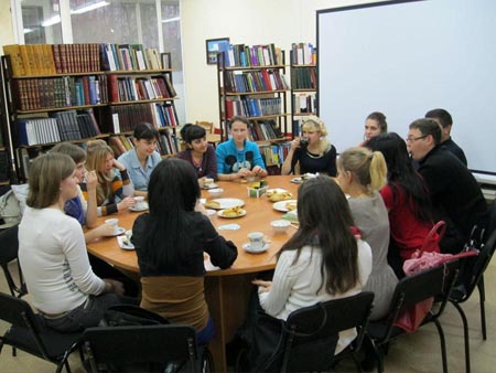 Студенты с откровенностью и эмоциональностью читали свои любимые стихи Александра Блока, Анны Ахматовой, Марины Цветаевой, Сергея Есенина, Владимира Маяковского, Бориса Пастернака. Чтение стихов чередовалось с музыкальными видеоклипами на стихи поэтов. Завершилась литературно-музыкальная гостиная чаепитием, во время которого студенты разных факультетов смогли поближе познакомиться друг с другом и пообщаться. Подробный фоторепортаж о литературной гостиной можно увидеть в библиотечном блоге InterAlia http://agniyainteralia.blogspot.ru/2012/11/blog-post.html.