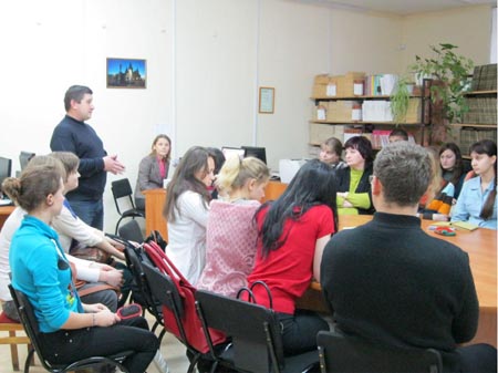Кроме того, в гости к нам пришли студенты Института истории и международных отношений вместе с преподавателем, кандидатом исторических наук, доцентом кафедры историографии, региональной истории и международных отношений СГУ А. Б. Малышевым. Алексей Борисович рассказал о том, что происходило в политической, общественной и экономической жизни России конца XIX- начала ХХ века и как эти процессы отразились в культуре, искусстве, литературе и, в частности, в поэзии. Этот период в истории литературы и был впоследствии назван Серебряным веком – временем расцвета русской поэзии, которой и была посвящена литературная гостиная.