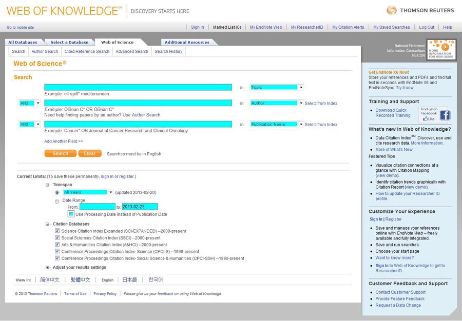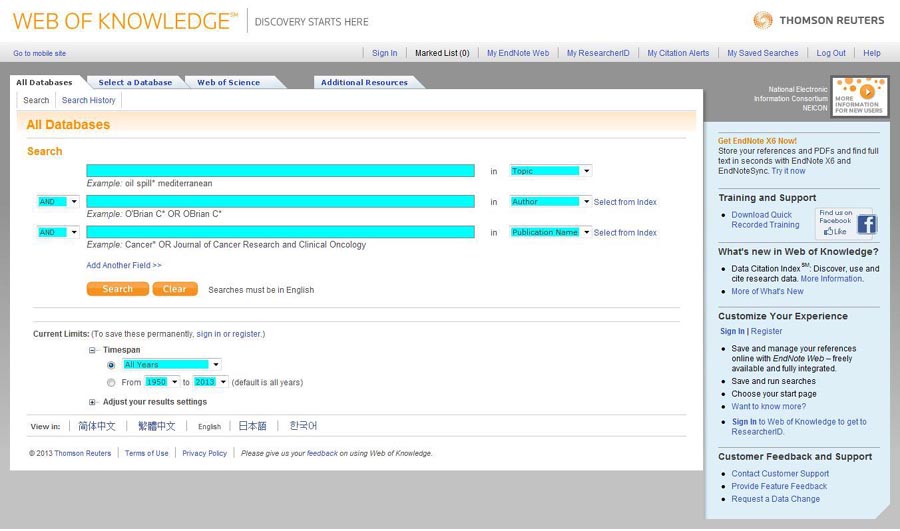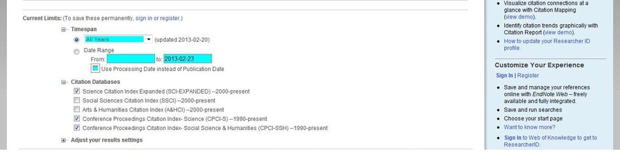 Начать решать эту задачу надо, естественно, с посещения главной страницы сайта, адрес которой – http://apps.isiknowledge.com – мы уже сообщали.