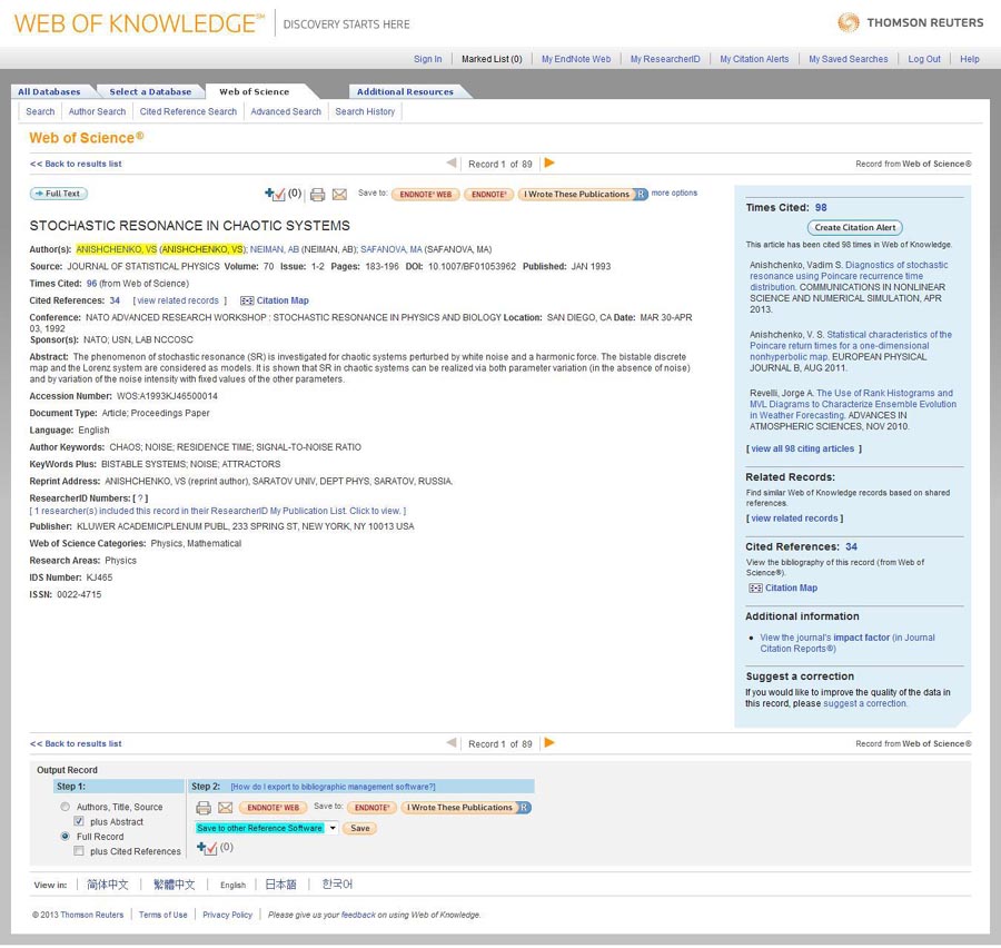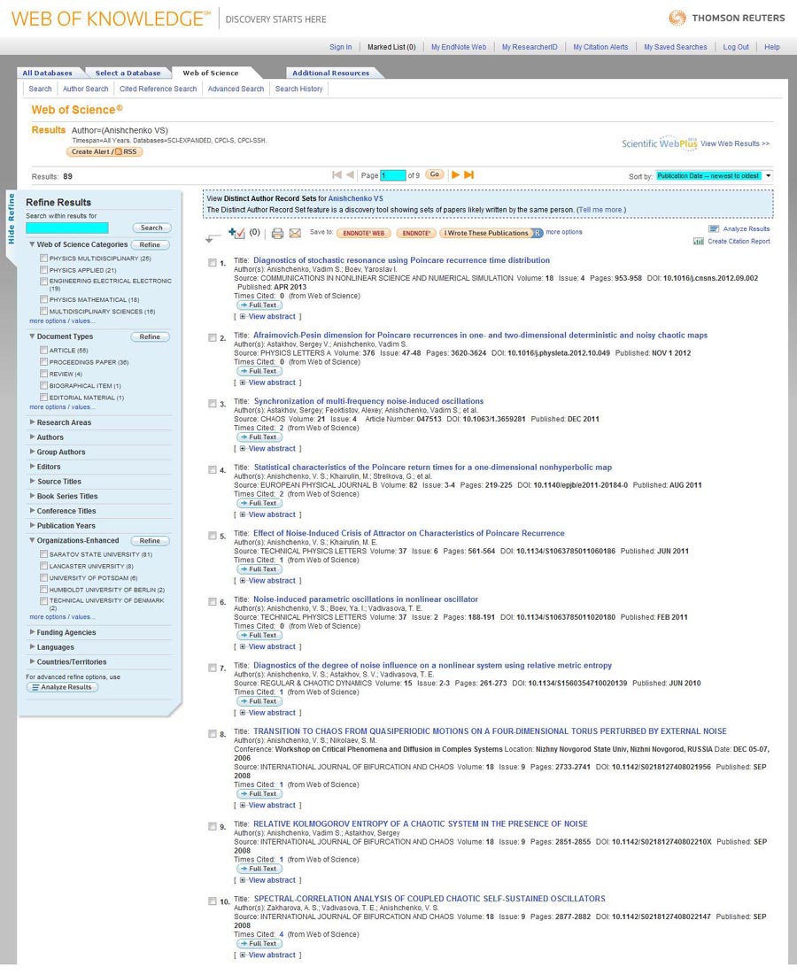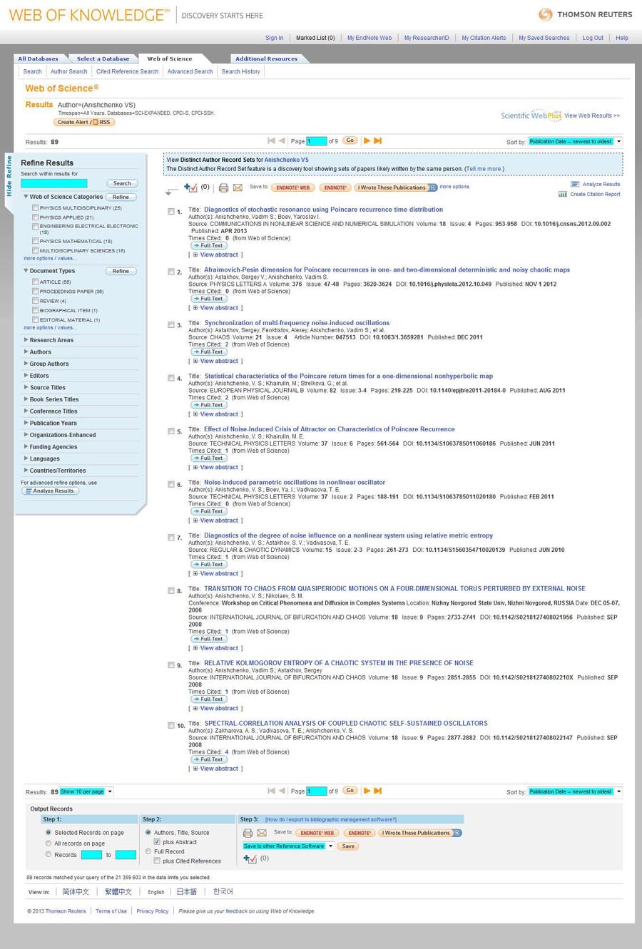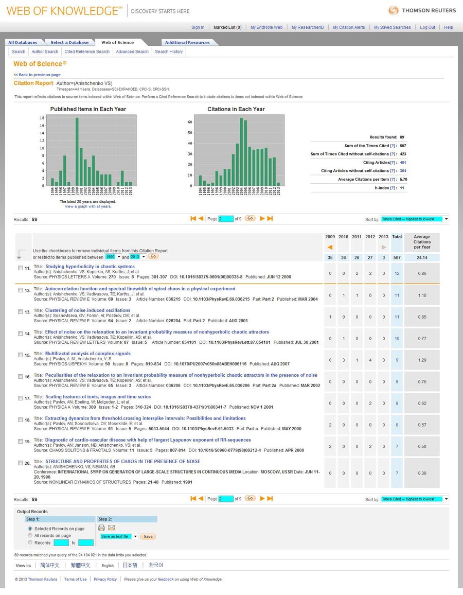 Продолжаем начатое в прошлом номере знакомство с возможностями Web of Knowledge. Расскажем, как узнать свой (или своих коллег) индекс цитируемости.