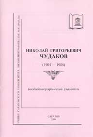 Николай Григорьевич Чудаков (1904 — 1986). Биобиблиографический указатель / Сост. Г. Я. Палагина; Отв. ред. А. В. Зюзин. — Саратов: ЗНБ СГУ, 2004. — 24 с.: портр. — (Ученые Саратовского университета. Биобиблиографические материалы).
