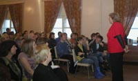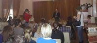 В зале была развёрнута большая выставка французской книги XVI-XVIII вв. из фондов ЗНБ СГУ, которая пользовалась повышенным вниманием присутствующих. О наиболее уникальных и интересных изданиях экспозиции рассказала в своём обзоре заведующая отделом редких книг и рукописей ЗНБ СГУ Н. А. Попкова.